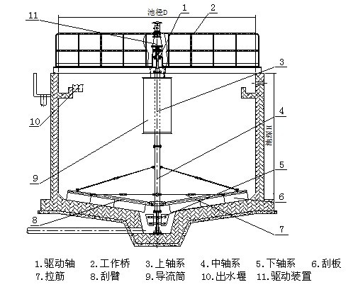 □ 可選:中心導(dǎo)流筒,V形出水堰板,撇渣裝置(擋渣板及支架、撇渣板、排渣筒等)